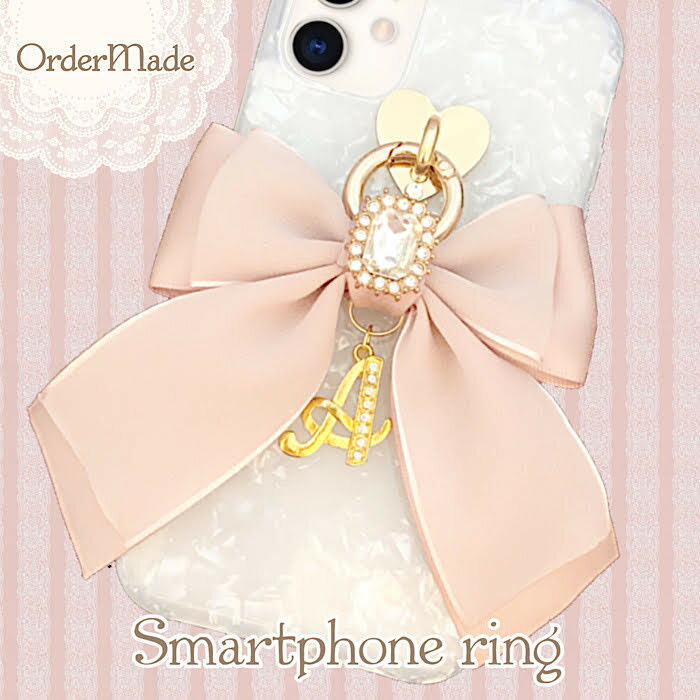 スマホ リング ルルリボン アルファベット・イニシャル チャーム スマホ リング オーダーメイド iphone 全機種 韓国 シンプル おしゃれ かわいい 人気 カラビナ ホルダー バンカーリング 落下防止 フィンガーリング リボン スマホアクセサリー 【送料無料】