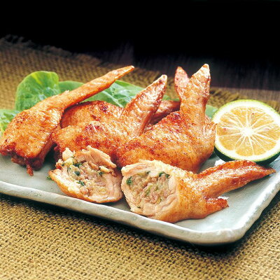 骨抜きした良質の国産手羽先の中に当店特製餃子の具ギュ..ギュッとたっぷり 詰め込みました! 揚げてヨシ!焼いてヨシ!とっても簡単手間いらずです♪