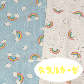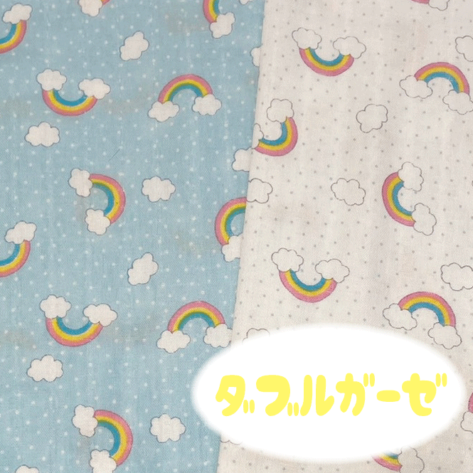 【ダブルガーゼ】カラフルレインボー【お気に入りシリーズ 虹 雲 レインボー 水玉 肌触りのいい 柔らかな ベビー用品 スタイ ハンカチ 赤ちゃん 枕カバー ゆめかわいい】