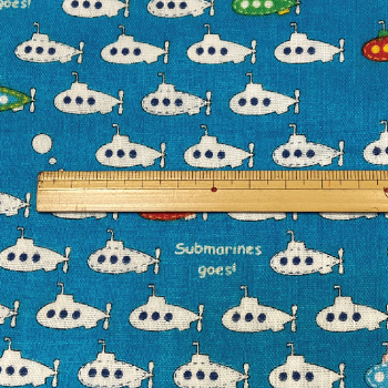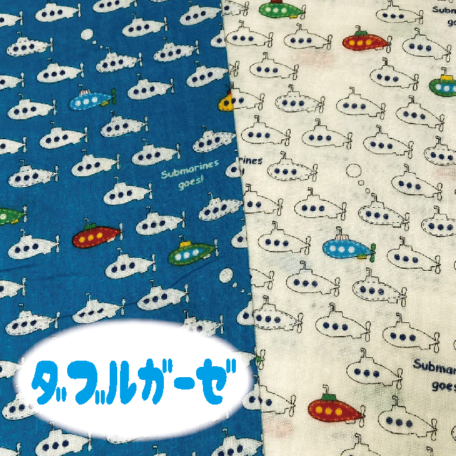 手描き風の潜水艦がかわいい^^ 肌触り柔らかなのでマスク作りにも。