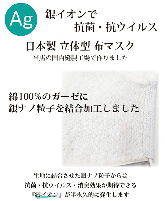 抗菌マスク Ag 銀イオン 抗ウイルス 日本製マスク フィルターポケット 立体型 ゴムひも調節 布マスク ガーゼ 洗える 消臭
